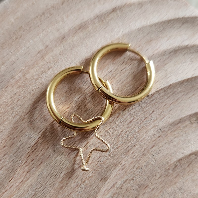 Créoles (acier doré) , charms gold filled 14 carats (or recyclé)