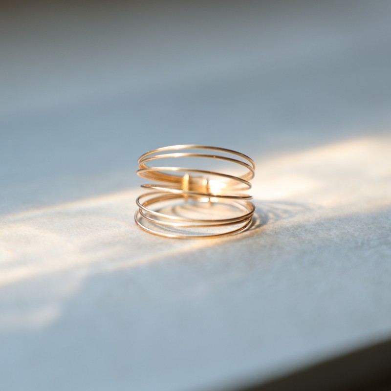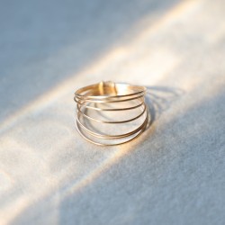 Bague multi-rangs (7 tours) fil lisse en gold filled "or laminé" (585/1000), modèle Freya